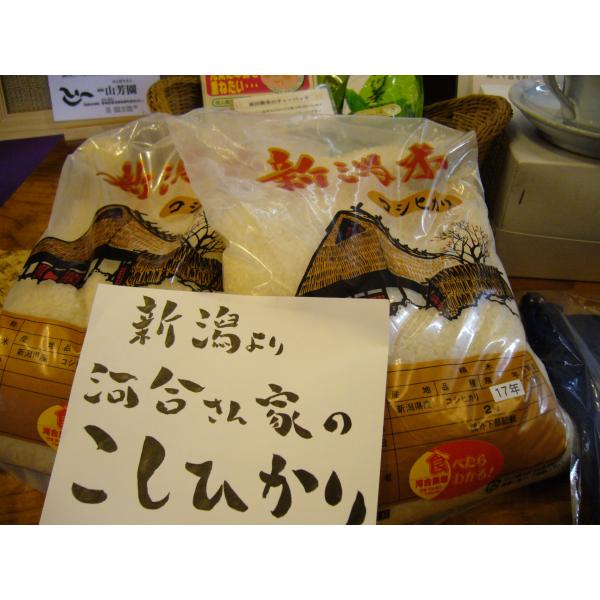 うちでもお客様に召し上がっていただいているお米!!新潟の河合さんとこの「こしひかり」やっぱりお米は美味いものを!!こちらは自信を持っておすすめしてます!味見をしたい方は山芳園へお泊りくださいね♪♪